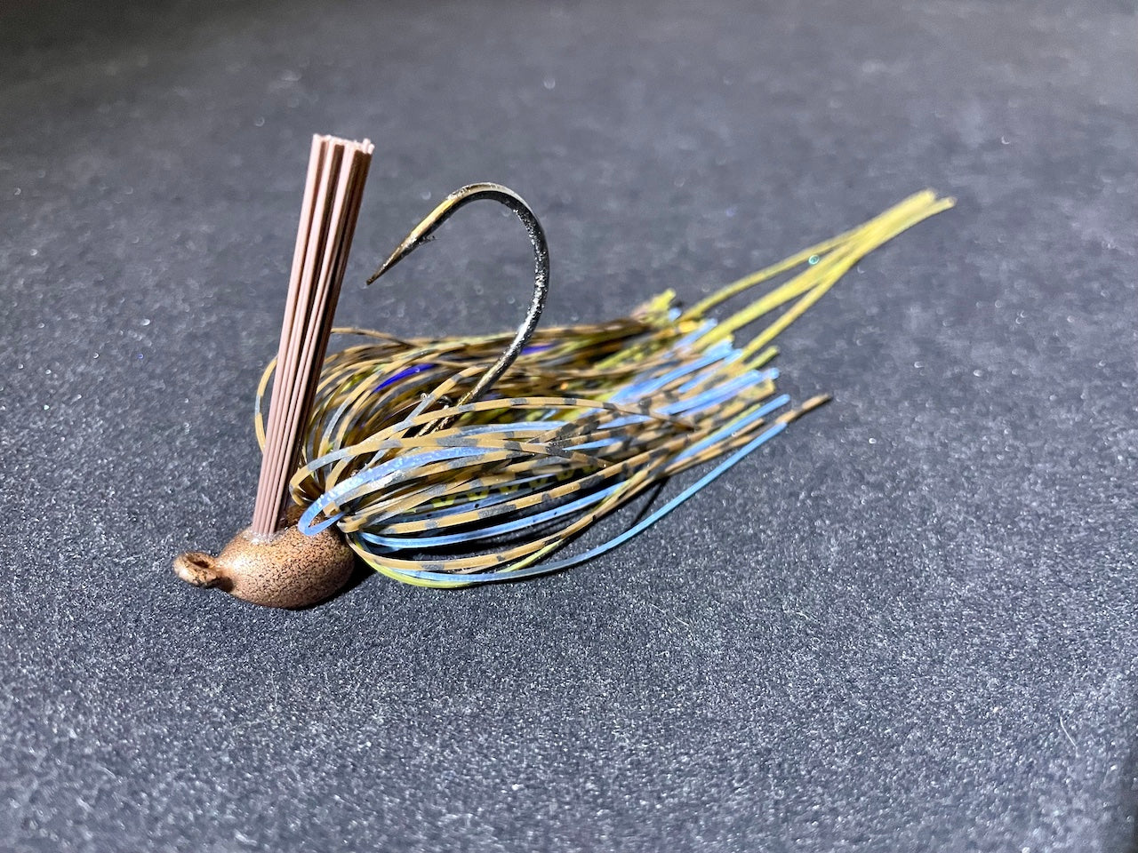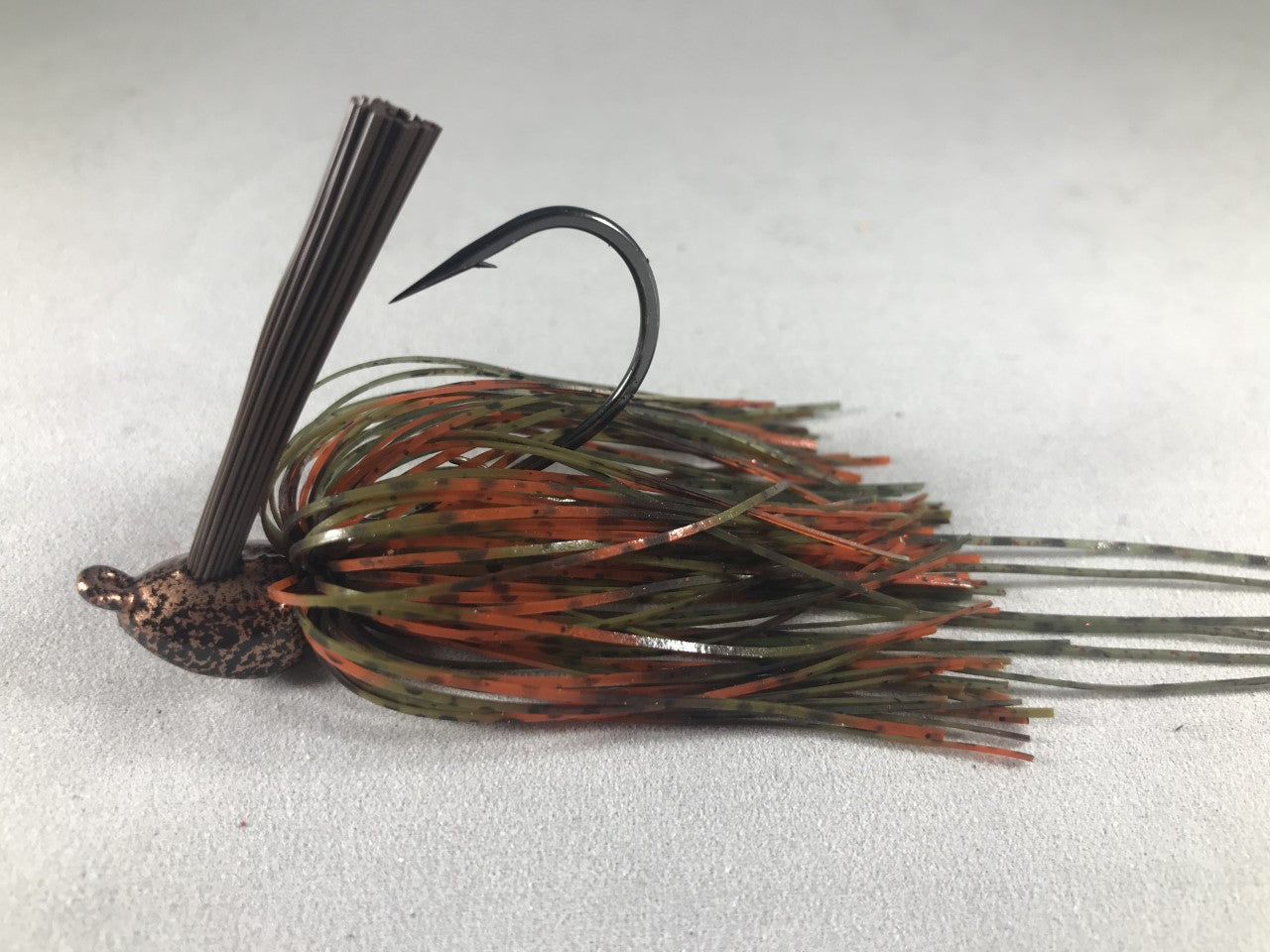 Here is the heavy cover Flippin' Jig. This is the ultimate design for heavy cover applications. This jig features a 6/0 Mustad Ultra Point Hook that will not flex when using heavy rods and braided line. Certain features on this jig make it right at home in heavy cover, such as the flat front on the jig head. This edge enables the jig to be shook in place when you pitch it into heavy grass or flooded bushes and log jams. Give this jig a try and you're sure to put the giants in the boat!