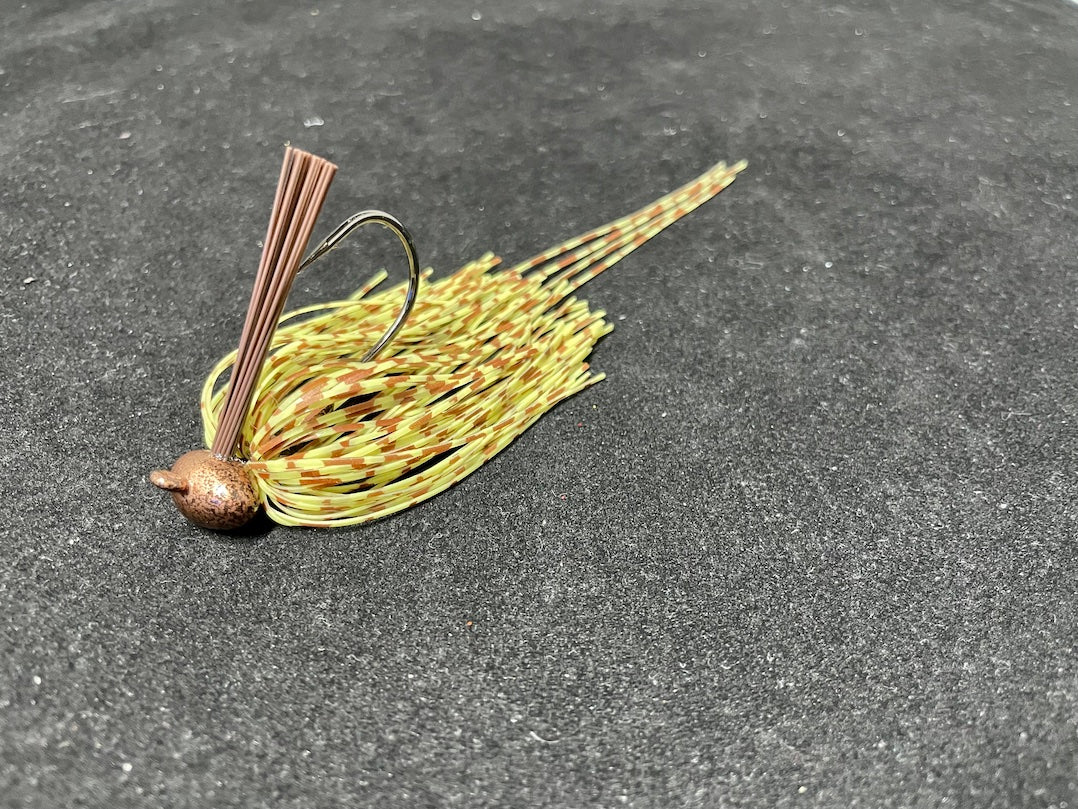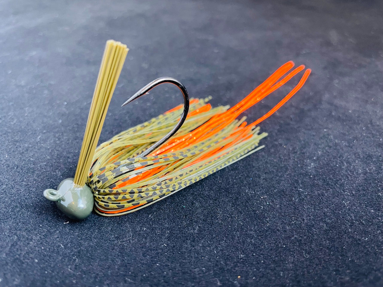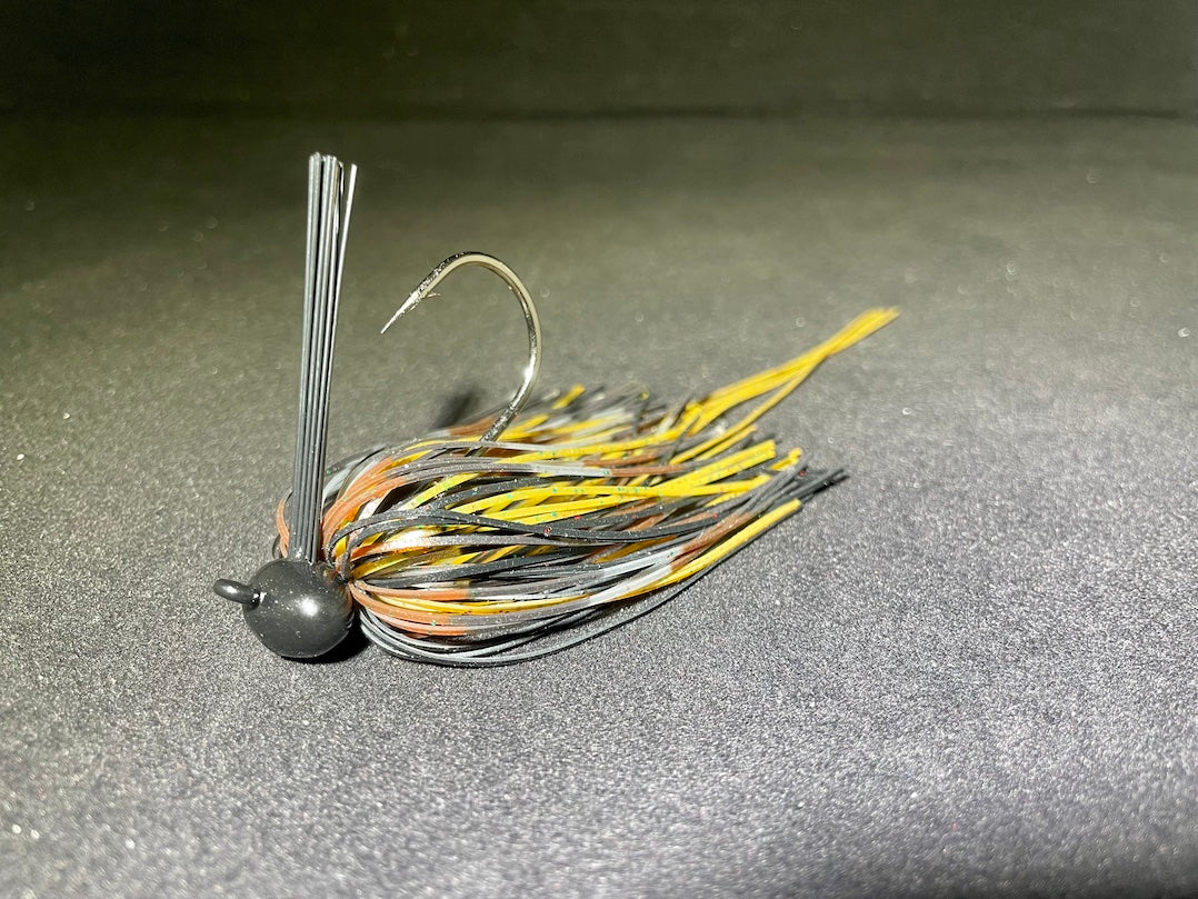 Black Angel Lures 3/4 OZ. Football Jig! .Our Football Jig is hand tied with the finest silicone available. All Black Angel Lures Football Jigs feature Mustad Ultra Point flat eyed hooks. These hooks are super sharp and strong. The eye catching feature on the Black Angel Lures Football Jig is the innovative trailer enhancer. This feature adds the appearance of antennae to all trailers.
