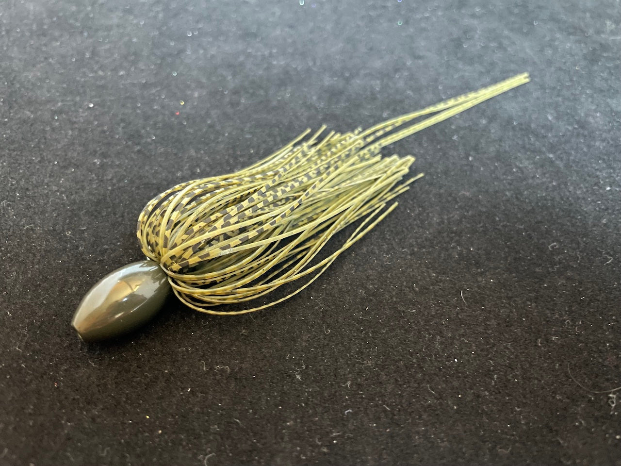 Our Tungsten Punch Rigs are powder coated and hand tied with Kevlar thread. We use the same high quality skirting material as our other jigs and include the 4 strand enticer tail.